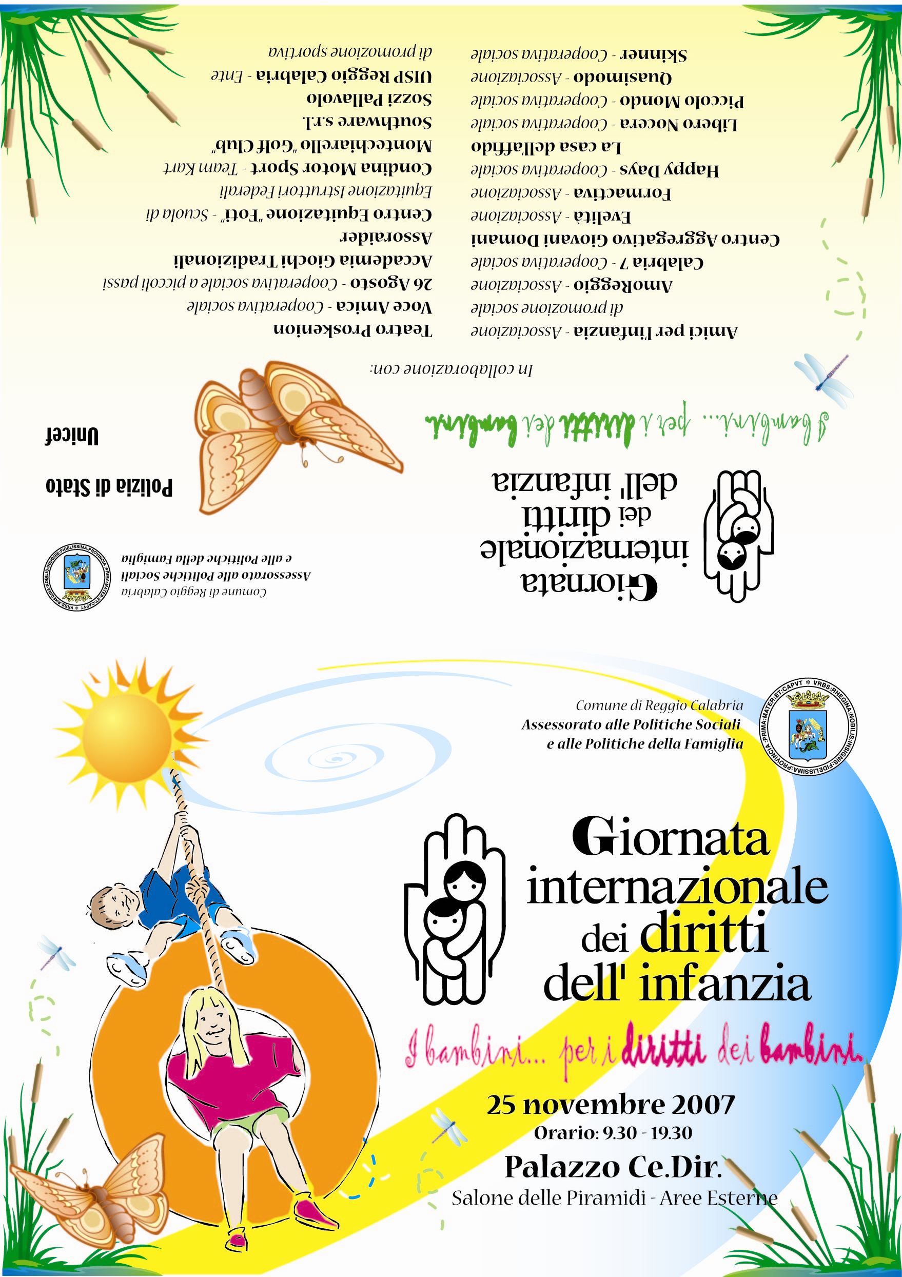 Il 25 Novembre 2007 dalle ore 9:30 alle ore 19:30, Giornata Internazionale per i diritti dei bambini e degli adolescenti - Tutti i bambini sono invitati a scoprire le attività di animazione. Ingresso libero